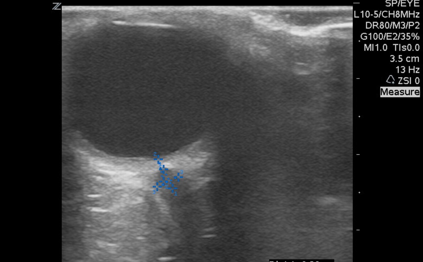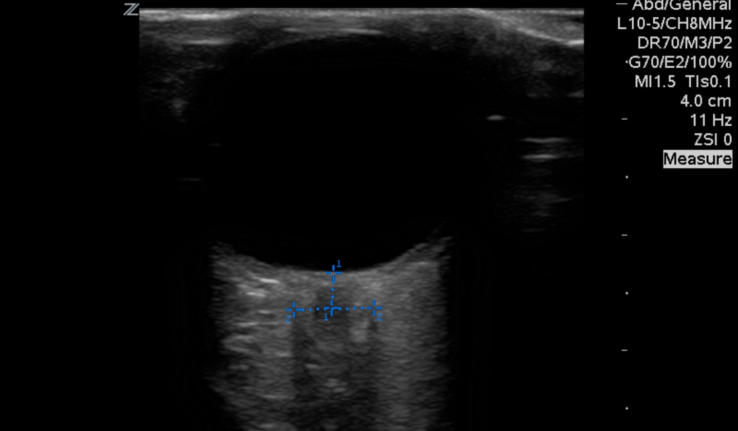 So close, but a few too many measurements. When evaluating for optic nerve sheath diameter or ONSD measure 3mm from the retina into the optic nerve. Then measure the diameter left to right. A value of more than 5mm in adults suggests an elevated intracranial pressure.