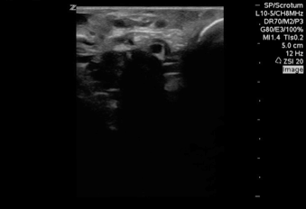 See the multiple cystic looking structures next to the testicle? Those are not blood vessels. Time to call up the CDC for some experimental treatment.