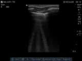 Due to the distinct multiple sub-pleaural lesions from miliary TB the B-line pattern is distinctly different from pulmonary edema. Single foci are seen with “exploding” b-lines rather than multiple vertical lines. Captured wonderfully with the linear, high frequency transducer. An important distinguishing feature, especially in developing clinical environments.